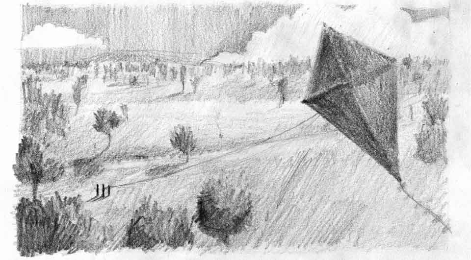 When I fly a kite, I feel a sense of control. The kite may do loops in the wind or dive towards the ground, but it's tethered to me. Balancing the kite and the wind feels like a powerful and meditative act; I look up and get lost in the clouds.